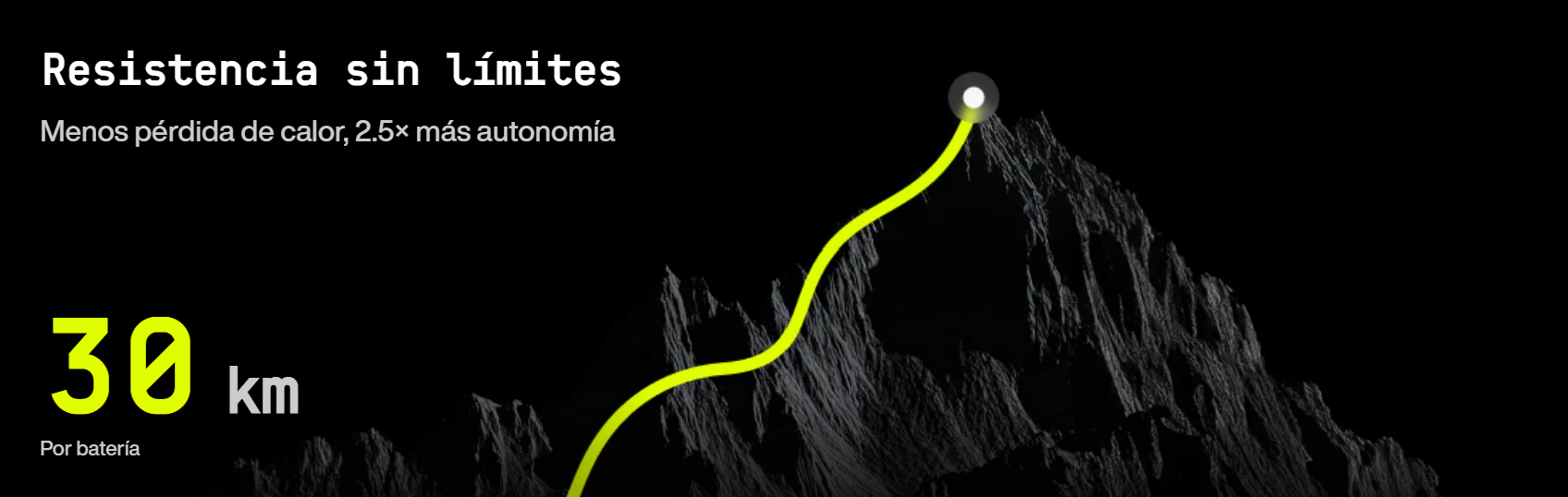 Llega más lejos y sube más alto con una sola carga. Nuestra gestión de energía mejorada reduce la disipación térmica en un 47 %. Te entrega hasta 2,5 veces más autonomía por batería y te mantiene con energía para aventuras durante todo el día.